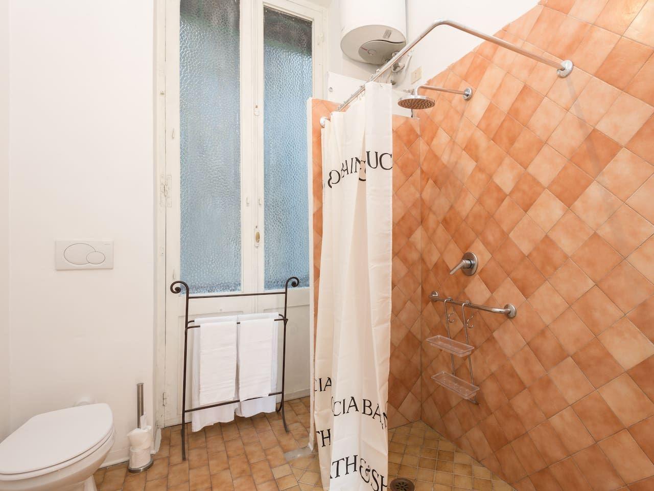 Luminoso appartamento di quasi 100 mq al secondo piano senza ascensore. Nel cuore di Roma, a Piazza dei Ricci, a due passi da Piazza Campo de Fiori e piazza Navona. Ingresso. Soggiorno con divano letto doppio, TV schermo piatto, camera da letto con letto matrimoniale, poiché i soffitti sono alti, la seconda camera da letto ha un letto sul soppalco e, sotto, altro letto singolo. Cucina moderna completa e confortevole attrezzata con fornelli, forn...